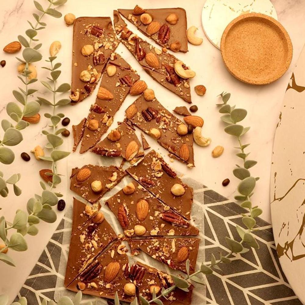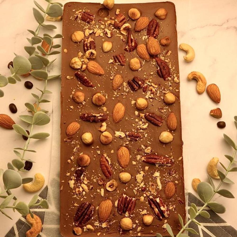 لوح شوكولاتة مزين بالمكسرات أو الفواكه المجففة